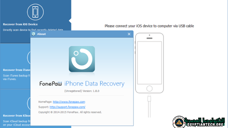 تحميل برنامج Fonepaw Iphone Data Recovery كامل برنامج استعادة الملفات المحذوفة من الايفون الصور والموسيقى والفيديوهات والرسائل والمكالمات والاسماء وغيرها أقوى برنامج لاستعادة الملفات المحذوفة من هواتف الايفون والايباد بالكامل.