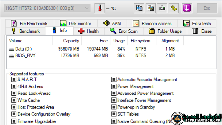 - مراقبة الحالة: يوفر مراقبة في الوقت الفعلي للمعلمات الحاسمة مثل درجة الحرارة وساعات التشغيل ومعدلات الخطأ لمساعدة المستخدمين على توقع أعطال القرص المحتملة.