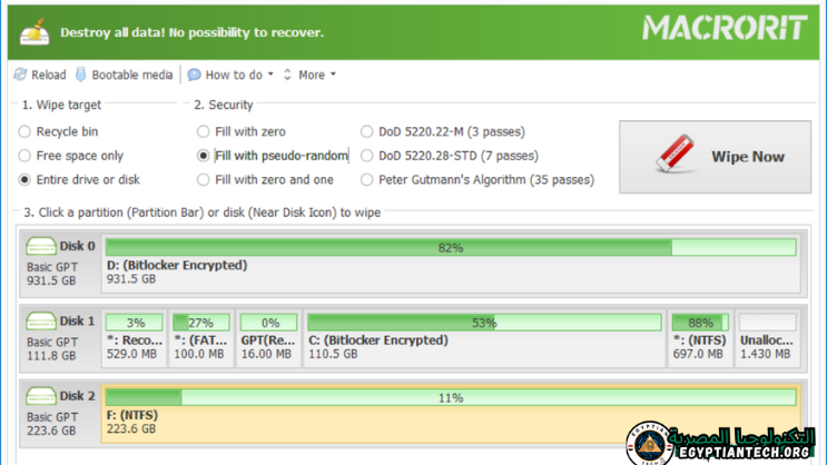 • يدعم فحص ومسح كافة الأقراص في نفس الوقت